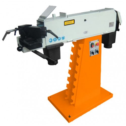 Два режима скорости 15 м/сек и 30 м/сек, передняя часть станка оснащена поворотными/подвижными тисками для обработки заготовок под углом и защитным экраном, задняя часть станка оснащена столом для упора заготовок под различными углами.